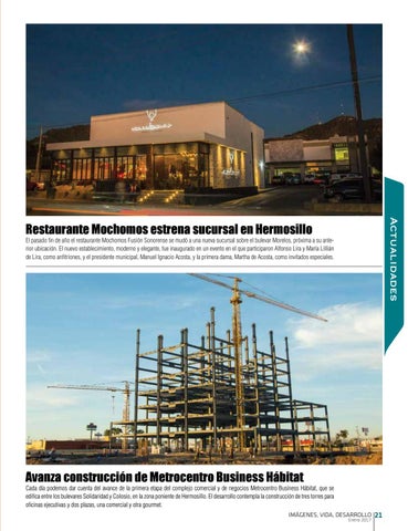 Cada día podemos dar cuenta del avance de la primera etapa del complejo comercial y de negocios Metrocentro Business Hábitat, que se edifica entre los bulevares Solidaridad y Colosio, en la zona poniente de Hermosillo. El desarrollo contempla la construcción de tres torres para oficinas ejecutivas y dos plazas, una comercial y otra gourmet. IMÁGENES, VIDA, DESARROLLO Enero 2017
