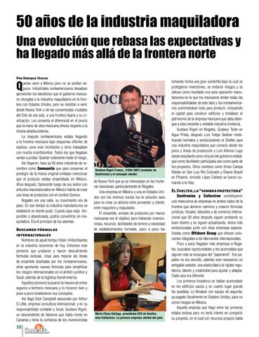 Buscando fórmulas internacionales Nombres de aquel tiempo flotan rimbombantes en la industria sonorense de hoy. Entonces eran pioneros que probaron y fueron descubriendo fórmulas exitosas. Unas para mejorar las líneas de ensamble diseñadas por los norteamericanos, otras aportando nuevas fórmulas para simplificar los riesgos internacionales en el ámbito jurídico y fiscal, además de la logística transfronteriza. Aquellos pioneros buscaron la manera de entrar seguros a territorio mexicano y lo hicieron bien y poco a poco fortalecieron sus conceptos. Así llegó Dick Campbell asesorado por Arthur D.Little, empresa consultora internacional, y en su responsabilidad contable y fiscal, Gustavo Rigoli, un descendiente de italianos que había vivido en Cananea y tenía la confianza de los inversionistas