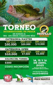 Con nutrida participación se llevó a cabo el XIII Torneo Internacional de pesca de Lobina primavera 2023 organizado por El Novillo Bass Club, A.C. Edición en honor al Ing. Luis Angel Caballero Rios, con una bolsa de mas de 100 mil pesos en premios. Con un gran ambiente de camaradería y sana competencia se dieron cita en San Pedro de la Cueva y en el templo de Batuc cientos de pescadores deportivos en busca de las lobinas mas gordas, llevándose el primer lugar en la categoria Master el equipo “Los Compadres” compuesto de Alejandro Pérez Rubio, Jesus Lauro Molina y Rafael Muñoz, en la categoría Open el equipo Middagh de West y Bill Middagh, los campeones de la golona Buddy Rabdall y Studly del equipo land shark con una gorda de 3.800 kg