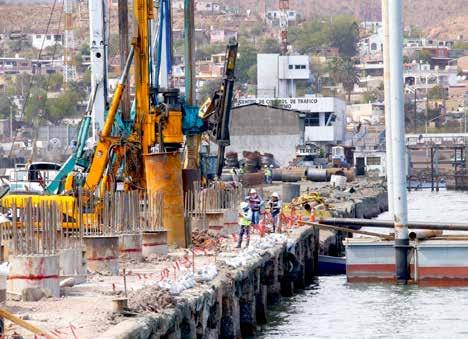 En el recorrido pudimos constatar los avances significativos en la construcción de Muelles de Usos Múltiples; el Tablestacado de Contención Banda Este muelle Uno; El armado de las estructuras del Almacén de Graneles Minerales (Concentrados de fierro, cobre y otros como barita y minerales a granel que se exortan por Guaymas,algunos procedentes de Estados Unidos.