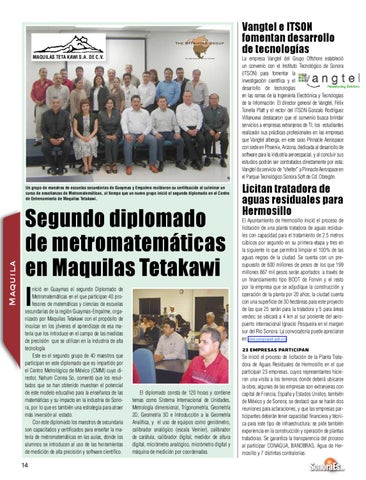 nició en Guaymas el segundo Diplomado de Metromatemáticas en el que participan 40 profesores de matemáticas y ciencias de escuelas secundarias de la región Guaymas-Empalme, organizado por Maquilas Tetakawi con el propósito de inculcar en los jóvenes el aprendizaje de esa materia que los introduce en el campo de las medidas de precisión que se utilizan en la industria de alta tecnología. Este es el segundo grupo de 40 maestros que participan en este diplomado que es impartido por el Centro Metrológico de México (CMM) cuyo director, Nahum Correa So, comentó que los resultados que se han obtenido muestran el potencial de este modelo educativo para la enseñanza de las matemáticas y su impacto en la industria de Sonora, por lo que es también una estrategia para atraer más inversión al estado. Con este diplomado los maestros de secundaria son capacitados y certificados para enseñar la materia de metromatemáticas en las aulas, donde los alumnos se introducen al uso de las herramientas de medición de alta precisión y software científico.
