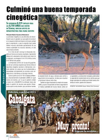 un agostadero y una fauna bien manejada y potencializar la capacidad de mantenimiento de los ranchos para que tengan ejemplares de calidad que brinden buenos dividendos al rancho, aparte de los becerros. FUENTE: SAGARHPA-Sonora- Héctor Ortiz Ciscomani
