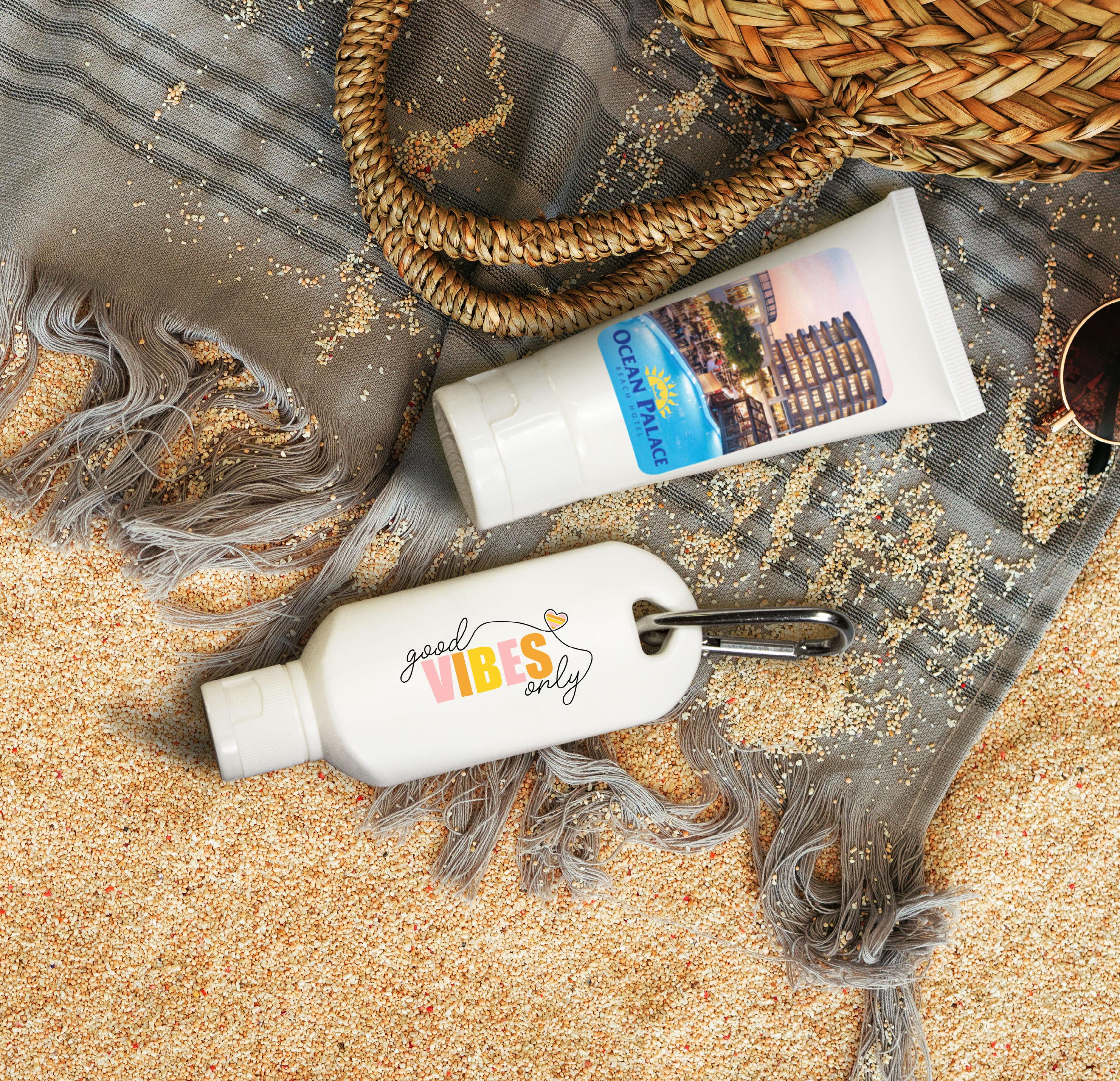 Pack of four Sunburn Alert stickers that take the guesswork away from when it is time to re-apply sunscreen. They are a practical and easy to use warning device for anyone who is out in the sun. The user places a sticker on the back of their hand and applies sunscreen over it at the same time it is being applied to other parts of the body. Each sticker is UV sensitive and turns blue when sunscreen protection diminishes and the skin is being exposed to harmful UV rays. The sticker will turn white again when sunscreen is re-applied, indicating protection has been restored. Instructions for application and use are printed on the cardboard pack and it can be branded in full colour on the front at no extra cost. This product is not suitable for children under three years old, does not contain sunscreen and does not protect the user against sunburn. A production lead time of 25 working days applies to this product by air freight.