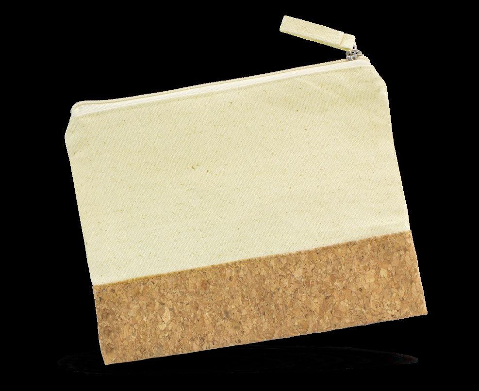 Smart pencil case which is manufactured from unbleached cotton canvas with a stylish natural cork accent panel around the base. It has a matching zippered top closure with a canvas zipper pull.