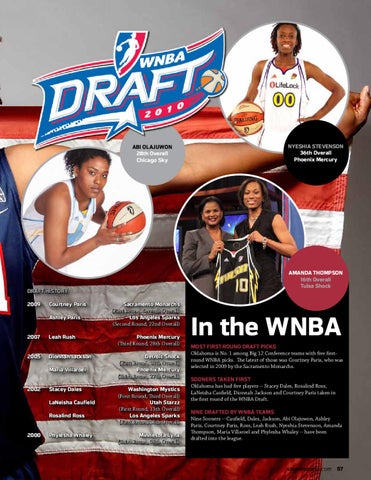 In the WNBA Most first-round draft picks Oklahoma is No. 1 among Big 12 Conference teams with five firstround WNBA picks. The latest of those was Courtney Paris, who was selected in 2009 by the Sacramento Monarchs. Sooners taken First Oklahoma has had five players -- Stacey Dales, Rosalind Ross, LaNeisha Caufield, Dionnah Jackson and Courtney Paris taken in the first round of the WNBA Draft. Nine Drafted by WNBA Teams Nine Sooners -- Caufield, Dales, Jackson, Abi Olajuwon, Ashley Paris, Courtney Paris, Ross, Leah Rush, Nyeshia Stevenson, Amanda Thompson, Maria Villaroel and Phylesha Whaley -- have been drafted into the league.