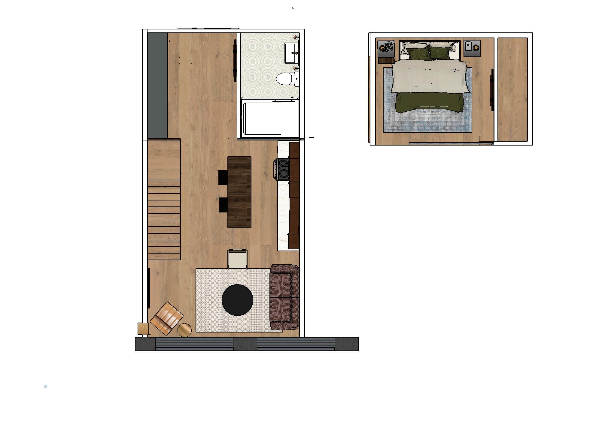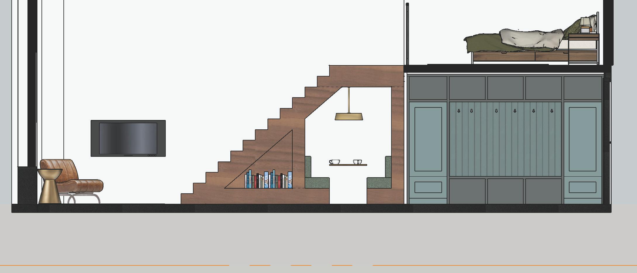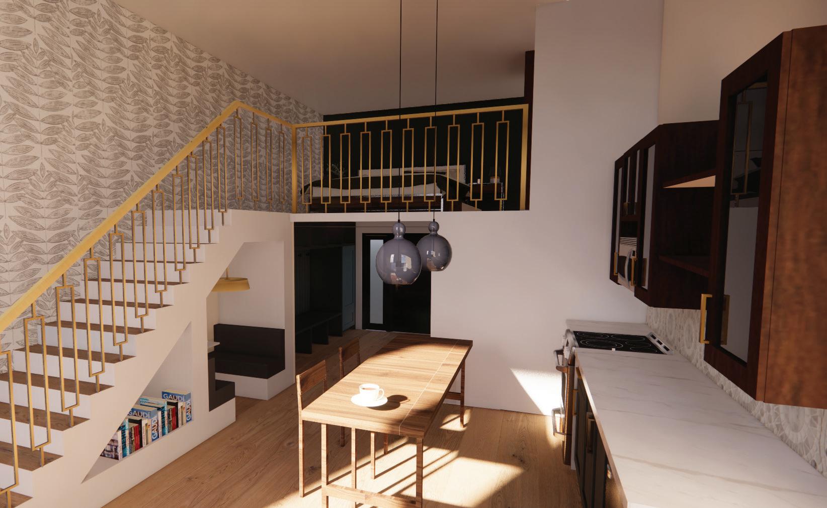 In my sophomore year I worked on an adaptive reuse design of this old school gym was developed through adaptative reuse design in which we utilized a Mixed use design concept with the first floor functioning as an art studio, gallery, and a generational suite. Utilizing the artists’ own work into the overall design of the space. Introducing the artists sense of whimsy and organic design, While the second floor functions as a the main residential space for the artist and their family. This design had some complications due to its nature of adaptive reuse but also in the reuse of the stage arch and catwalk because they were protected by the historic society of Spokane. With the generational suite attached on the first floor for the aging parents as well as the public gallery universal design was introduced into the overall design to allow for aging in place as well as allowing for all vistors in the gallery.