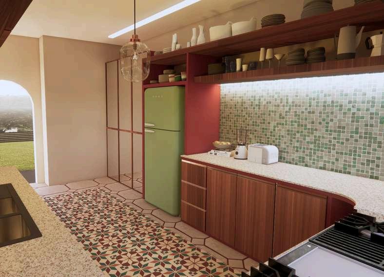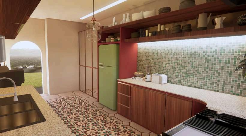 This kitchen was designed to be multifunctional, to be use to both social and creative needs. The space is perfect for hosting friends and family, offering a relaxed environment for conversations and gatherings Additionally, it is an ideal workspacewheretheclientcanbrainstormanddevelopnewideas Thekitchenisdesignedfortinkeringwithprojects, blendingfunctionalitywithawelcomingatmosphere.