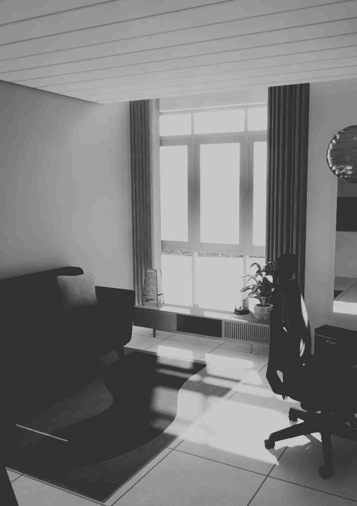 This area is designed to be separated from the public area Allowing the client to have their own space for himself whenever his friends or family decide to have a stay. Where hobbies and studies occur, this area. It's strategically positioned in the brightest part of the apartment, offering ample natural light for a vibrant atmosphere conducive to relaxationandproductivity.