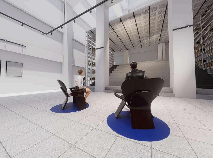 By ensuring it gives the feeling of being homey, healthy, and organic, I represent it with many curves, from the display to the glasspartition Thefurniturelayoutfeelslikethatofalivingroom inahouse,andtheroomlayoutfeelsfamiliar