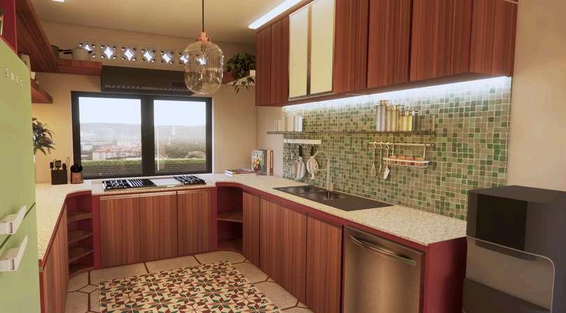 To create a warm ambiance, I've chosen to enhance the room with various wooden accents, paired with vibrant colors to add a distinctive touch. The well-thought layout welcomes the user, and good lighting and ventilation contribute to its inviting atmosphere. Xavier, who is passionate cook, appreciates the invitingfeeloftheroom,whichimprovehiscookingexperience.
