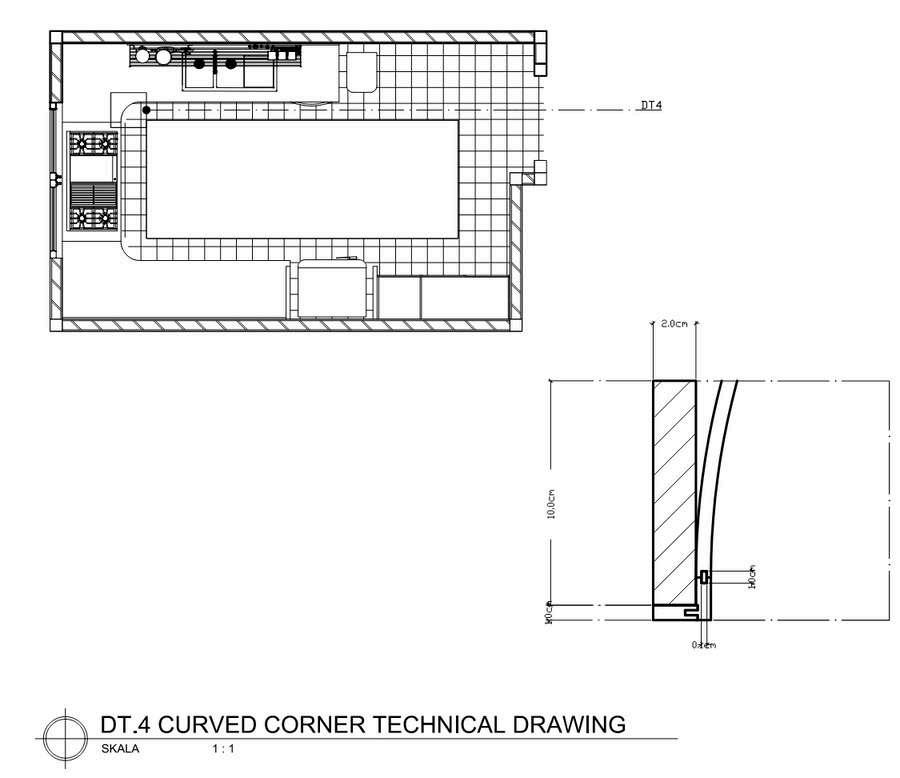 By using for more natural solid wood planks instead of HPL, I aim to create a space that feels as natural and homey as possible. From the furniture to the wall panels and balancing it with hints of aluminum for additional luminance, along with various sources of artificial or even natural lighting. Various curvy corner to represent their organic identity, To tease the customer with the bake goods smell, i remain the kitchen wall nottobefullycovered