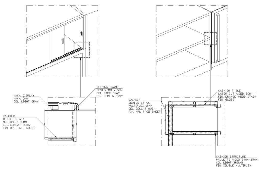 Customer circulation is one of the problem that Sarae Bakes are facing. Coming up with the idea that connects those whobuybakesandwhotakinguptheorder Makingitmoreefficientforcustomeroremployee Puttingafrostedglass asabackdroptoreflectsthetrustbetweenthecustomerandthechef Kitchenarearemainopentoteasethecustomer withthebakinggoodssmells.