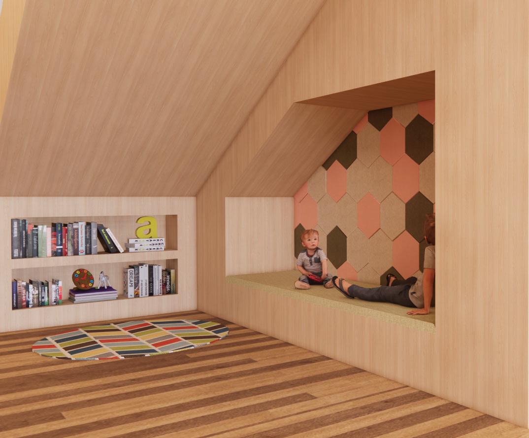 The childhood development lab serves as a communal nest where curriculum will emerge organically through observation of discovery and growth. A warm and familiar environment, with a balance between predictability and flexibility, will function as the third teacher by providing a canvas for students to explore the unfamiliar through the expression of languages.