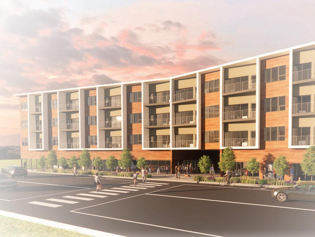 The mixed-use residential building provides apartments and various retail offerings to the Washington-Wheatley neighborhood of Kansas City.