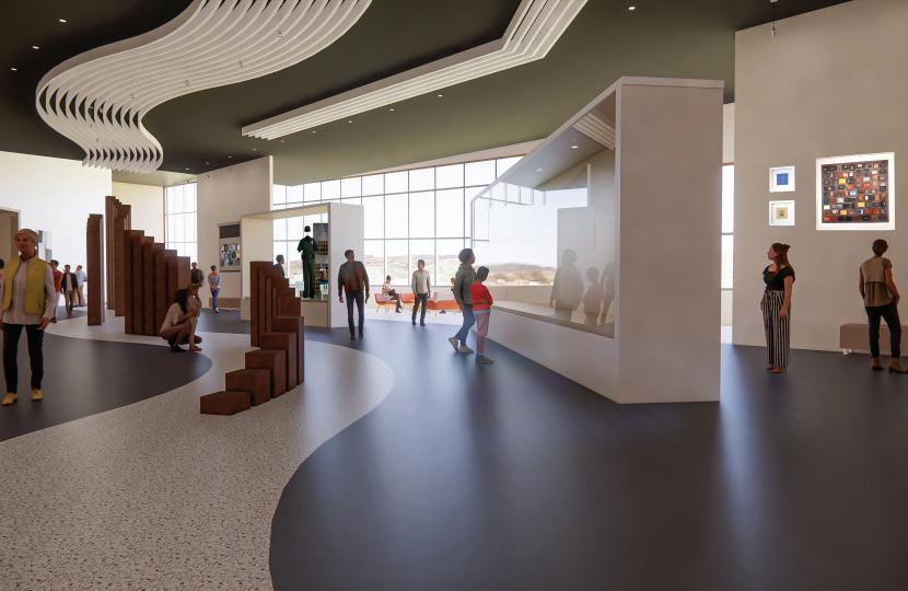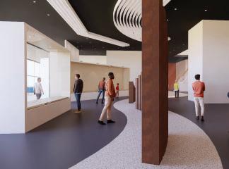 The central axis, where users enter the building, naturally divides the museum into two themes. On the left, directional circulation strictly guides users through a sequence of exhibits, encouraging an immersive learning experience. As they exit through the permanent exhibit, users cross back over the central axis, and enter the more reflective spaces that encourage conversation and community.