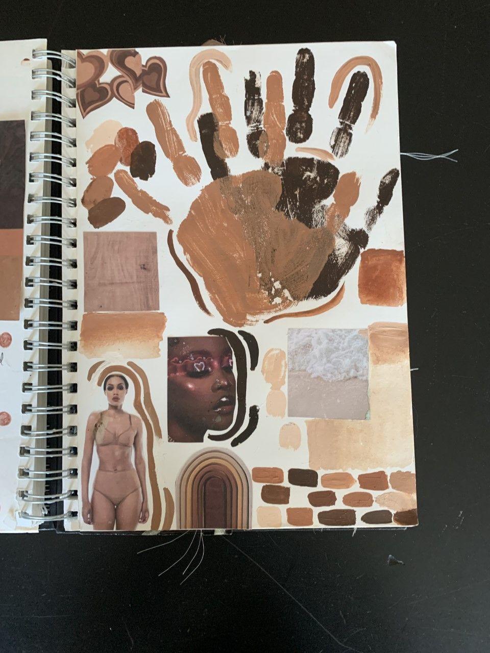 The pieces here represent my colour pallet, inspiration images and pieces that explore my chosen theme skin using mixed medias. My theme of skin represents diversity and the importance in protecting each other.