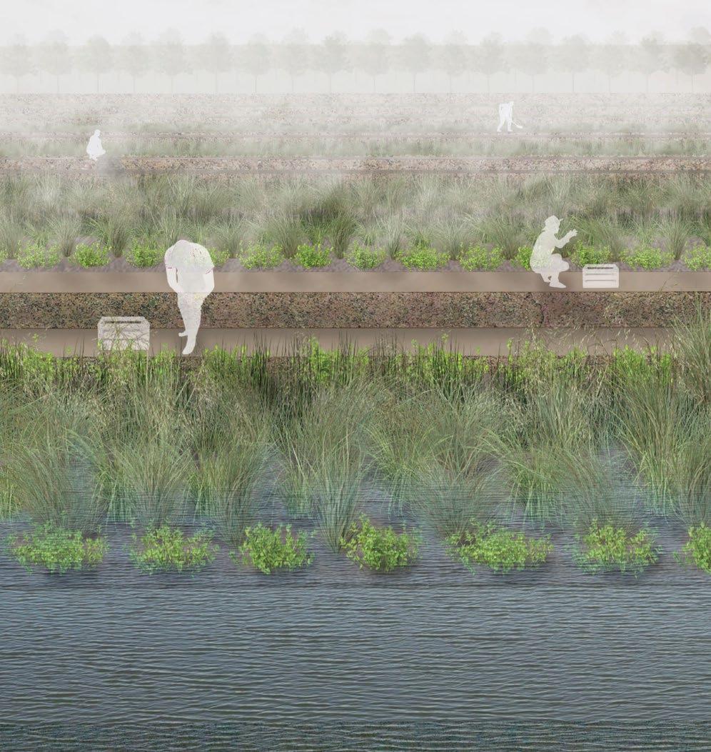 To begin the process of restoring Rumney Marsh and other coastal marshes back to health, the Wheelabrator landfill and Rumney Marsh are transformed into a rail-based, marsh nursery to grow and distribute plants to regenerate marsh ecology.
