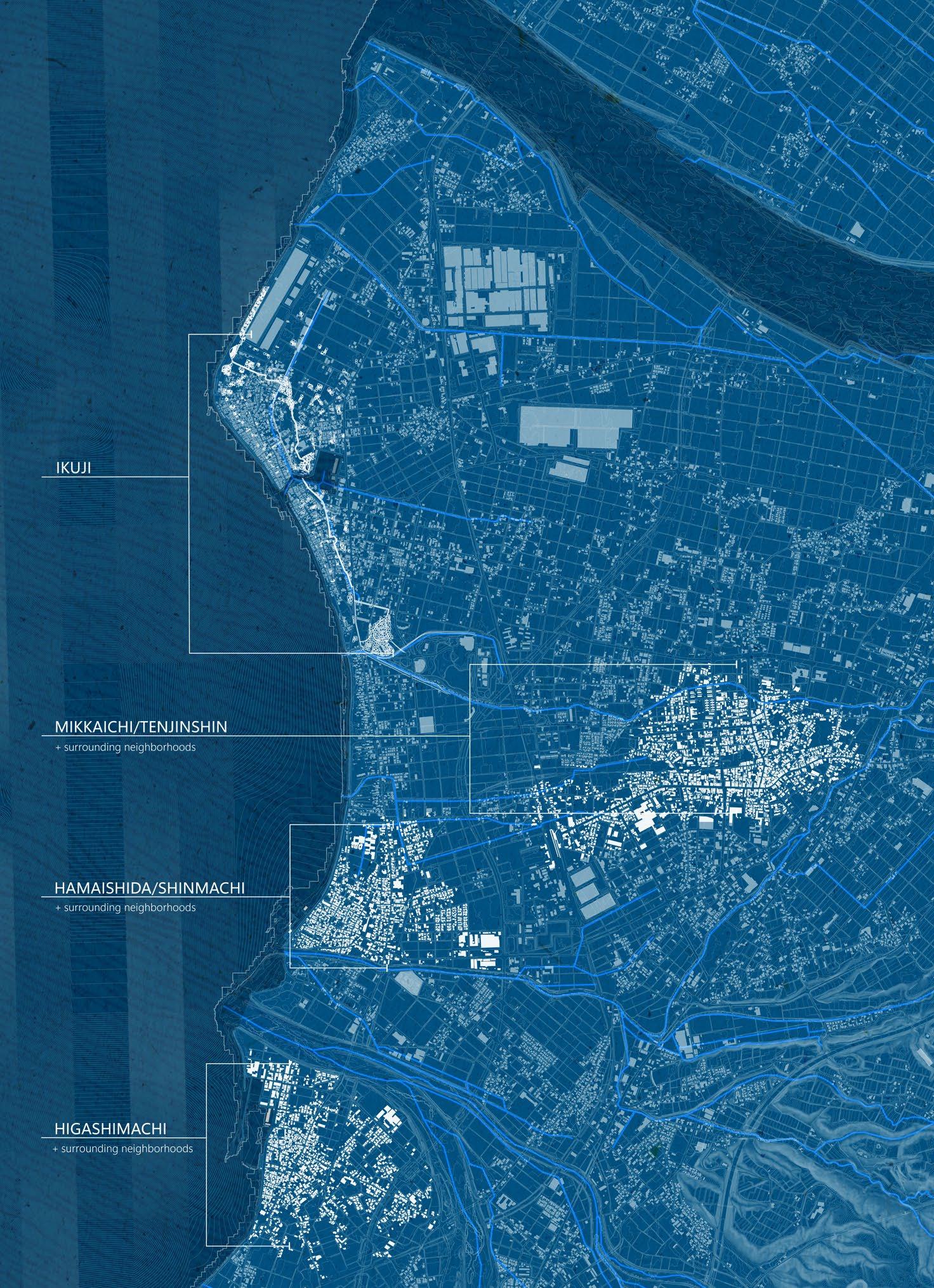 The Toyama Bay and the port are essential to fishing, which is the leading industry of Ikuji. Springs pump water daily from groundwater for everyday usage by residents and visitors. And lastly, large water channels collect storm runoff and quickly transport the water to the central fishing port. The multitude of water provides for all residents, but currently, the water is not used to its full potential. Residents do not utilize the water for socialization, recreation, transportation, and other activities.