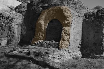 Als erstes wurde eine umfassende Analyse des Ortes durchgeführt. Hierbei liegt ein besonderes Augenmerk auf die historische entwicklung, um zu verstehen welche Bedeutung und welche Nutzung die Osteria di Centocelle in der Vergangenheit hatte und in welchem Zusammenhang sie mit den umliegenden Ruinen steht. Weiterführend wurde ein detailliertes Aufmaß der Ruine vorgenommen, um in weiteren Schritten die konstruktiven Gegebenheiten und auch die Baumaterialien tiefergehend zu analysieren. Daraus resultierend konnte im nächsten Schritt an den Materialien und der