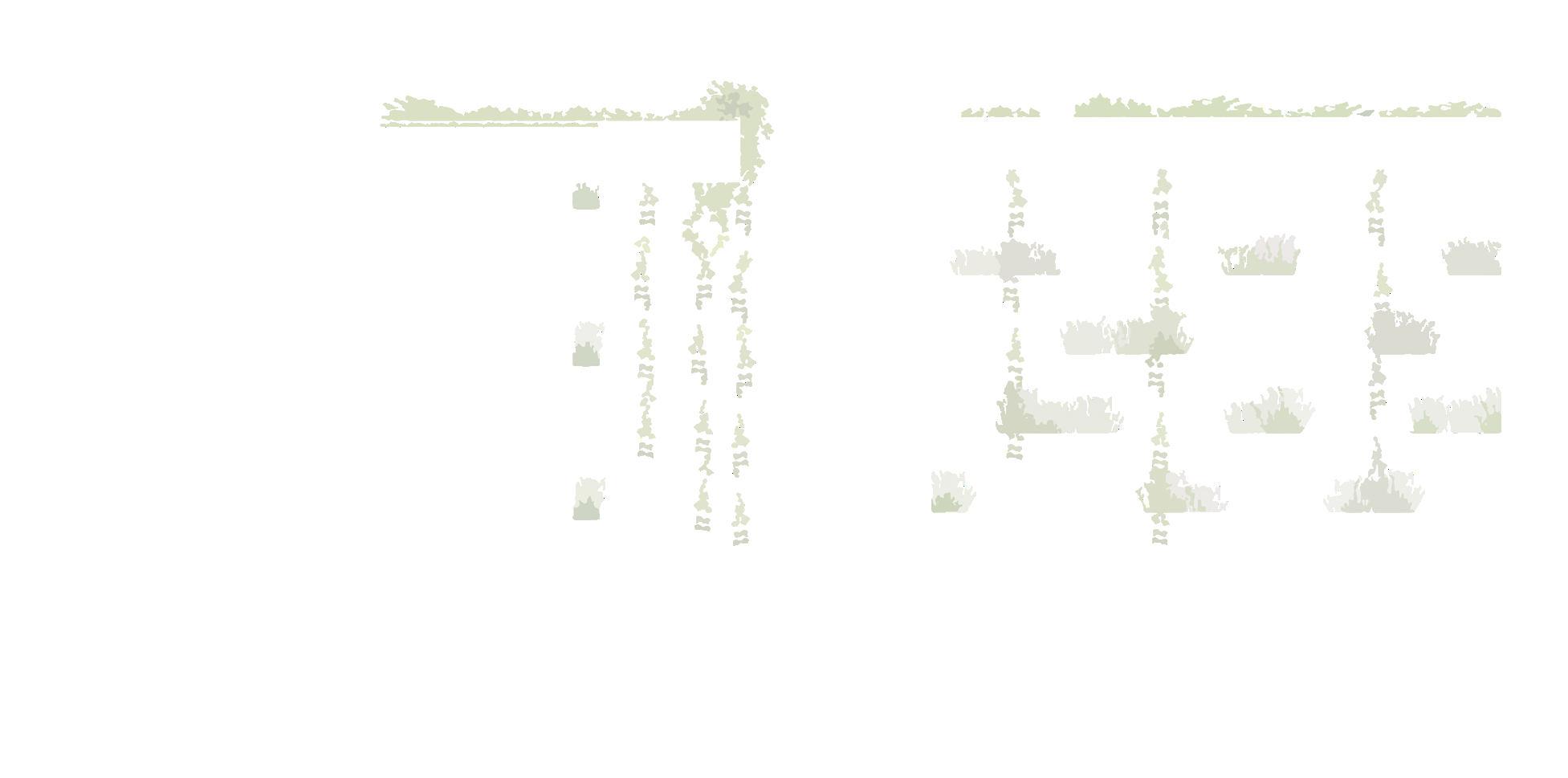 5. Eine Dachbegrünung die über das Dach hinaus rankt dient als zweite Fassade und fügt so das Gebäude weiter in seine Umgebung ein. Durch Einschnitte im Dach wird die Bewuchsdichte reguliert und es werden Eingangs- und sichtgeschützte Bereiche ausgebildet.