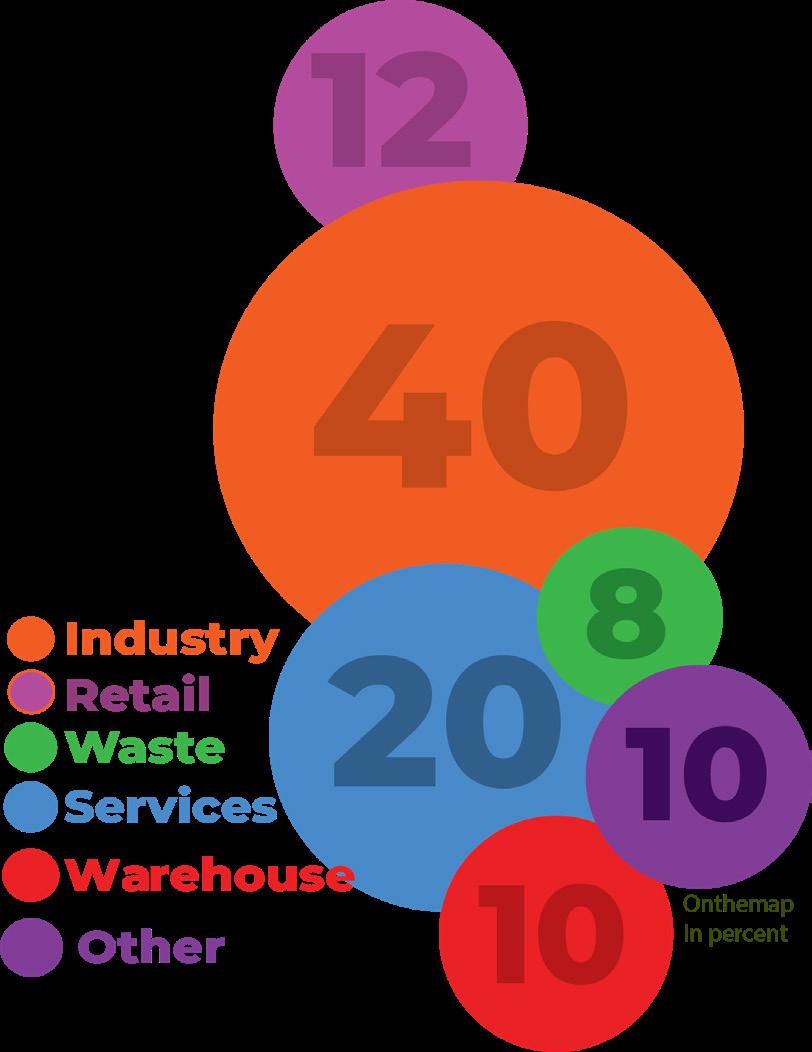 There are a couple large industrial employers in Camp Washington, like KAO and Rhinegheist. Many people who work in the neighborhood do not live in the neighborhood which could be attributed to the I-75 access.