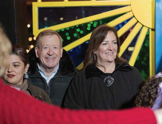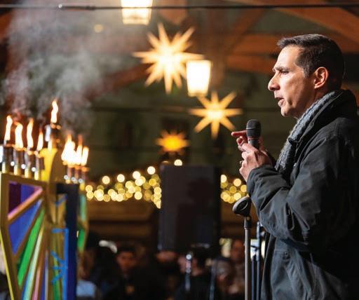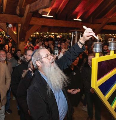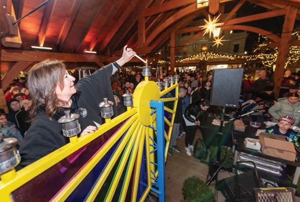 The Chabad community hosted its third annual Menorah Aflame at the Carmel Christkindlmarkt on December 14. Nearly 150 attendees gathered to join Rabbis Avi and Dovid Grossbaum, Mayor Jim Brainard, Mayor-elect Sue Finkam, councilman Miles Nelson and other Carmel public servants to light a multi-colored Menorah (artist: Brian Hull) on the final night of Hanukkah. Rabbi Dovid Grossbaum taught one of the lessons of Hanukkah: to never shy away from one’s own identity and belief system. Mayor Brainard spoke about the tradition of liberty in America, while councilman Nelson offered a pithy review of the Story of Chanukah. The acclaimed Hebrew School of the Arts regaled the crowd with a performance of three classic Hanukkah songs and everyone enjoyed fresh Sufganiyot (Hanukkah donuts).