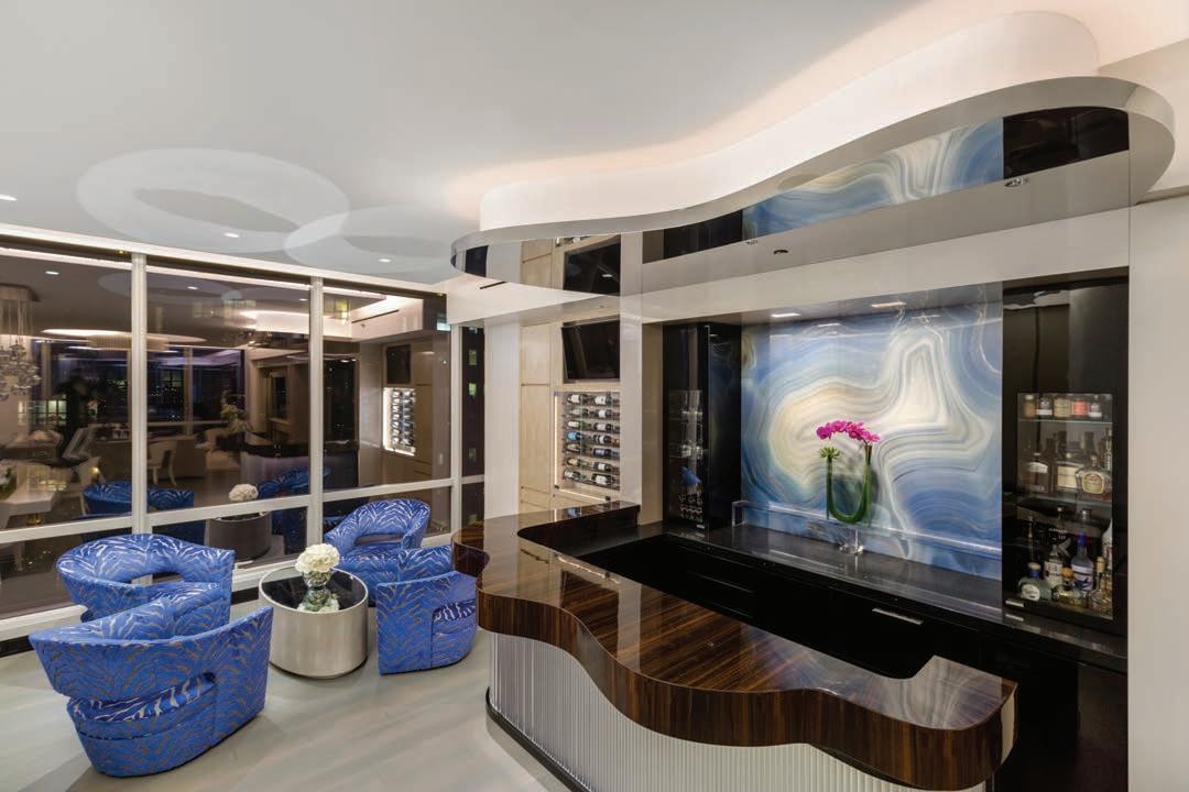 The project also provided a platform to showcase pieces from the Bentley Home furnishings line, including the Malvern Chair. A bar and vanity unit are among the one-off case goods. The Contest Yacht’s Captain’s chair and ‘Egg’ tables were given a bespoke touch by Bentley, along with the sofa, which was handbuilt at Bentley’s engineering facility.