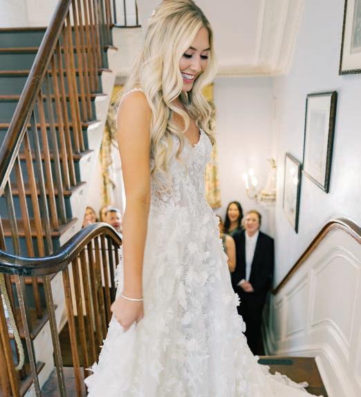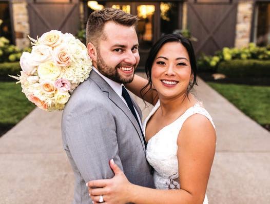 during the service, and Hannah’s young nephew was ringbearer. There was even an appearance by the couple’s spaniel puppy, Winston. The couple’s journey began when they met briefly at Kilroy’s ten years ago, then reconnected when Hannah visited Boston, where Al was living. They had a long-distance relationship for several years that culminated in a romantic proposal by Al in Napa Valley. sl