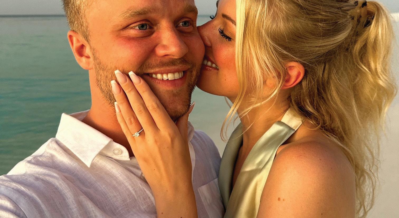 Emille Sutt and Felix Rosenqvist became engaged on November 8 while on a trip to Zanzibar, Tanzania. Both are from Sweden; their parents are Stefan and Angelie Sutt and PO and Kicki Rosenqvist. Felix is an IndyCar racing driver. He surprised Emille with the sunset proposal when they got to the tropical island of Zanzibar following a safari. Says Felix, “I knew I was going to do it on that trip, and I was definitely nervous (and she could tell), but I think