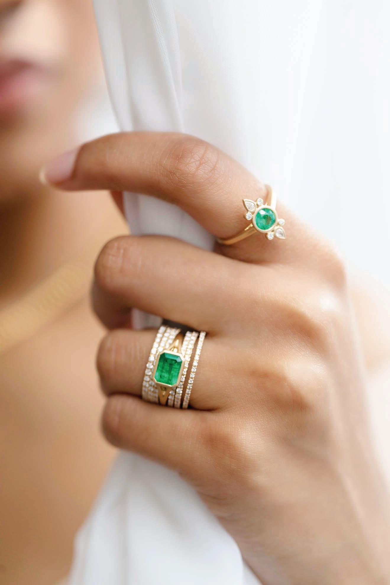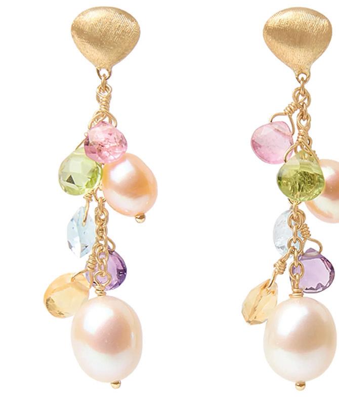 This page, clockwise from top left: Assael Sciacca coral multi strand earrings ($4,800). Available through Diamond Cellar in Columbus and Nashville and assael.com. EF Collection emerald bead & bezel diamond necklace ($925, efcollection.com). Established Jewelry Cowboy necklace ($2,550; establishedjewelry.com). Marco Bicego Paradise gemstone & pearl earrings ($1,340). Available through Diamond Cellar in Columbus & Nashville, Reis-Nichols Jewelers in Indianapolis, Davis Jewelers in Louisville, and marcobicego.com. Essentially color South Sea pearl & diamond necklace from Picchiotti. Available through Moyer Fine Jewelers in Indianapolis, Elleard Heffern Fine Jewellers in St. Louis and picchiotti.it. Elhanati men’s Isha jade bracelet ($2,416; elhanati.com). Jenna Blake pink and white Heishi bead necklace ($4,800; jennablake.com). Opposite page, clockwise from top left: Guita M opal bead necklace with porcelain pendant ($3,200; guitam-jewelry.com). Ray Griffiths Sonoran turquoise necklace ($5,445; raygriffiths.com). The Last Swan necklace by Sanjay Kasliwal ($80,000; sanjaykasliwal.com). Nikos Koulis Lingerie collection brooch (nikoskoulis.com).