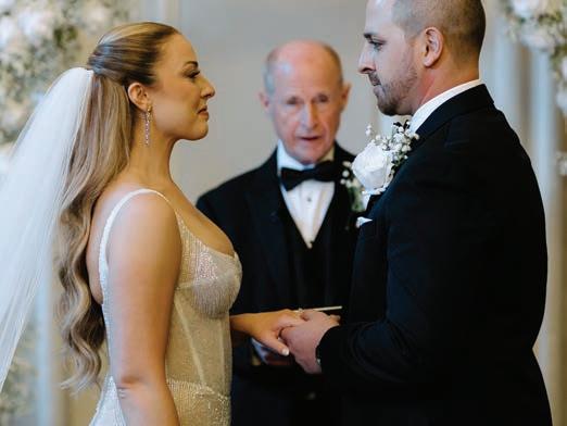 Vanessa Wahl and Griffin Oakes, both of Greenwood, were married on May 11, 2024, at the Omni Severin Hotel in Indianapolis, with the groom’s grandfather officiating. Though they attended the same grade school, as well as Indiana University at the same time, the couple didn’t meet until their mid-20s when they were introduced by a mutual friend. They immediately bonded over football–Griffin was an IU football player, while Vanessa was an Indianapolis Colts cheerleader. Griffin proposed to Vanessa on December 20, 2022, with his mother’s diamond, a cherished family heirloom. Vanessa is an apparel manager and also assistant coach and choreographer for the Colts cheerleaders, and Griffin is a physical therapist. Their parents are Hannah Mueller, Vanessa and Geoffrey Mahan, and Debra and Pete Oakes. sl