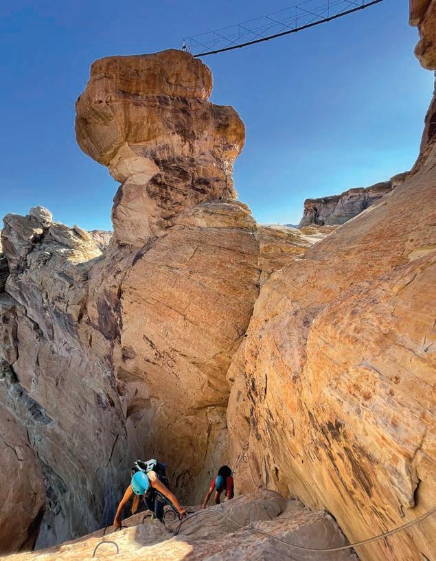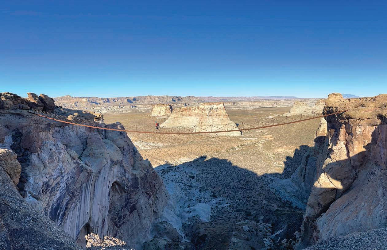 Crossing a 232-foot-long suspension bridge spanning a 600-foot deep gorge as part of an on-site Via Ferrata excursion.