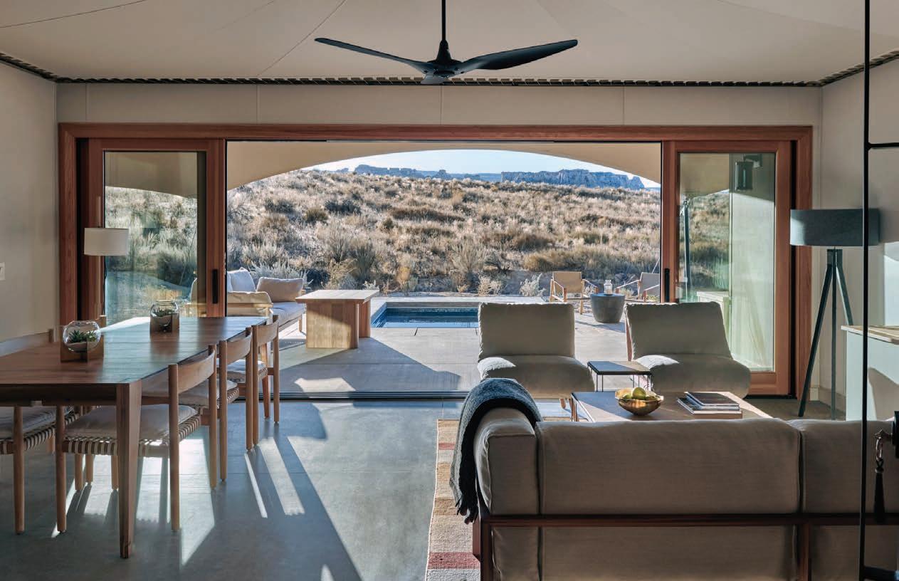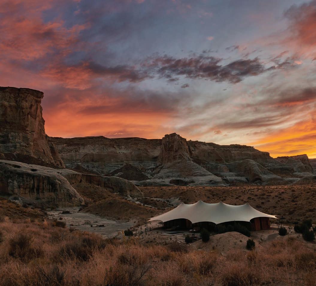 on the cover (and this page): Minimal to the Max Nature and luxury co-exist in refined harmony at Camp Sarika by Amangiri.