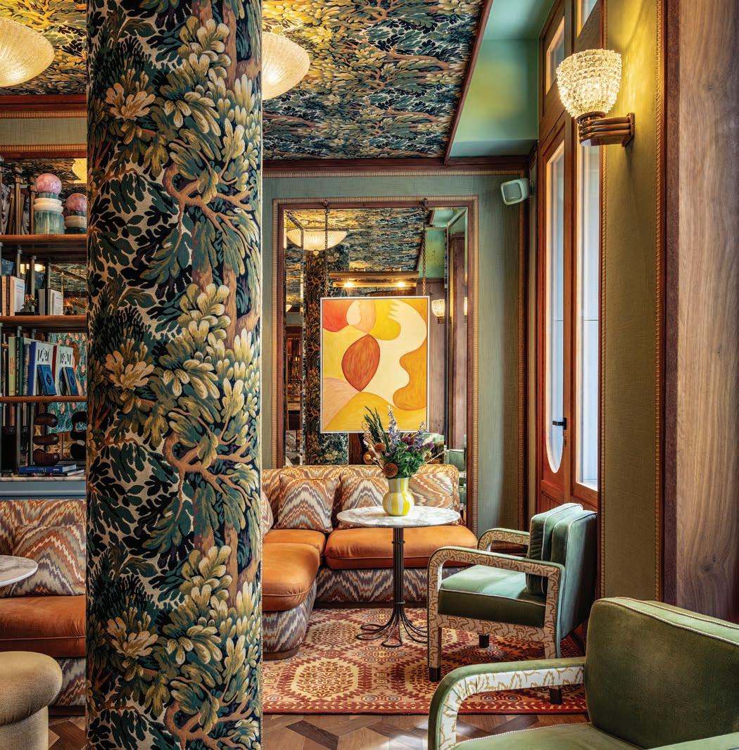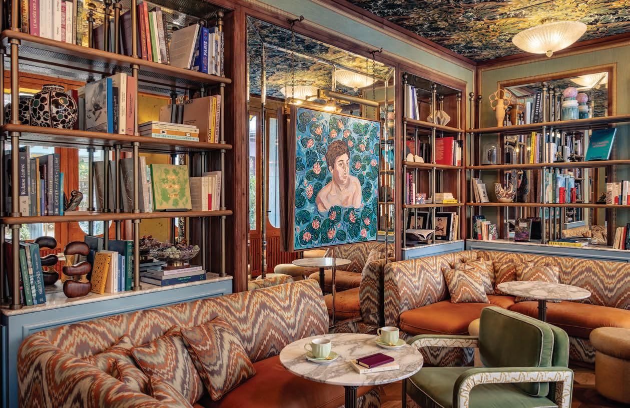 And, as if I needed a reminder that this property was a complete departure from the rarefied air (some would say stuffiness) found in the upper echelons of Parisian hotels, the reception staff, whose ages appeared to bridge the era where Millennials end and Gen Z begins, boasted casual uniforms, a more 21st-century letme-know-what-you-need attitude, and spoke perfect English. Adding to the "cool kids" vibe was a fantastic playlist and a sprinkling of artfully dressed modelesque locals tucked into the lounge's corner banquettes conversing over an aperitif.