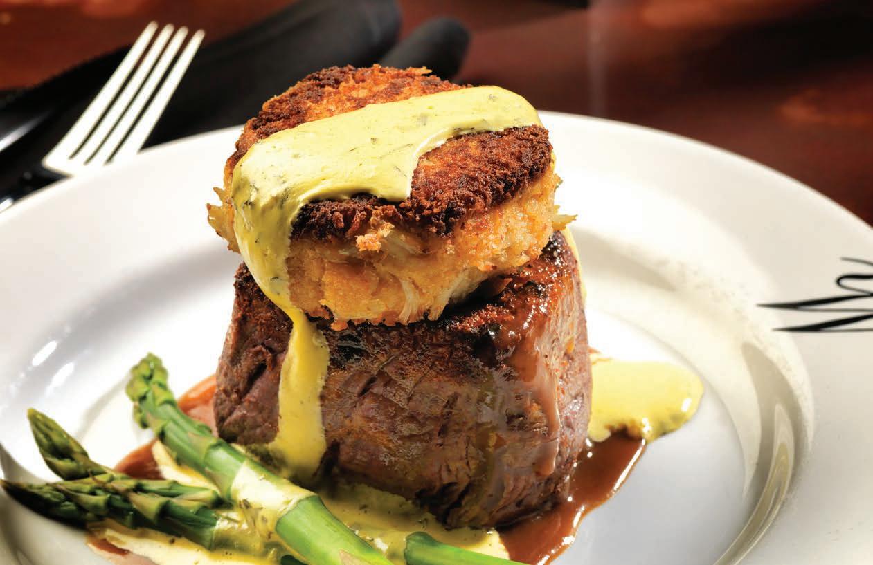 an exceptionally tasty raw bar, blackened scallops or salmon, and out- of-this-world crab cakes with much more crab than cake.