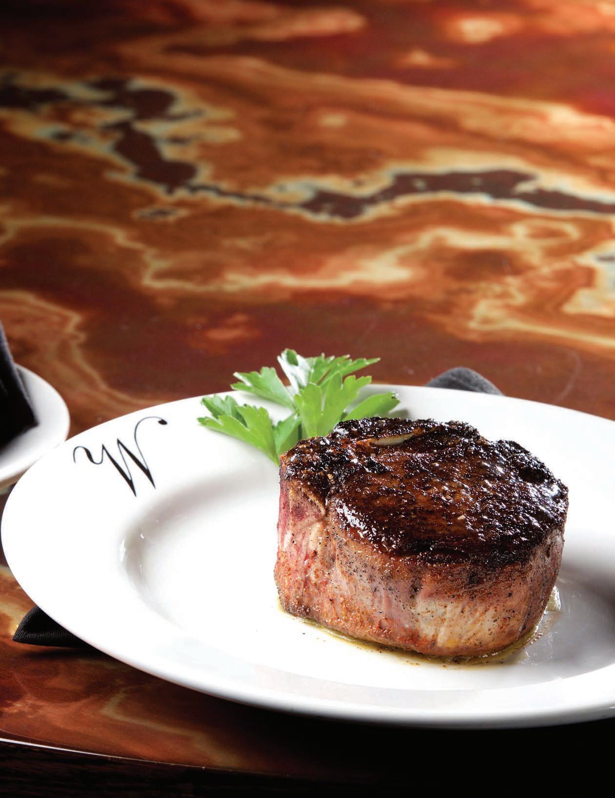 The beautiful cuts of premium beef are paired with equally delightful and complementary toppers of foie gras, mushrooms and onions, garlic herb butter, Béarnaise, and a classic Oscar topper to name a few. Chef featured selections include Black and Blue Tournedos, Au-poivre, and Steak Cauthen with trumpet mushrooms and a shallots & sherry truffle cognac demi glaze. If looking for something extremely unique, a 12oz Sakura Wagyu Strip is included on the menu.