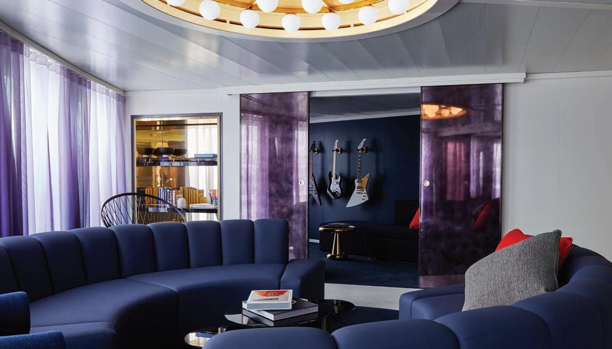 Each ship features 78 suites on board. These RockStar Quarters sailors get backstage access at every corner, including first dibs on reservations for dining, entertainment, and shore excursions. At the top of the food chain is the Massive suite (2,17 square feet), which includes its own music room, complete with guitars and an amplifier, as well as a private hot tub, an outdoor dining area for six, and a marble-clad bathroom.