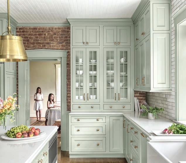 The primary objective for this extensive historic renovation and addition was to seamlessly integrate generous new living spaces into the existing 1920s-era Tudor style architecture. The front exterior facade remains primarily unchanged with only minor refreshes including paint, new house numbers and landscaping. The exterior of the house, however, proudly expresses an expansive two-story addition enclosing cozy living spaces on the ground floor and spacious bath, laundry and dressing areas on the second floor. The harmonious marriage of original architecture with new addition results in a completed restoration where the new respects and enhances the old. While the residence’s exterior endeavors to remain faithful to the home’s original era, the interior of the residence expresses fresh, updated spaces flooded with natural light. New windows and doors with minimized divided lights provide ample visual connection between interior spaces and the beautiful surrounding landscape. Reconfigured ground floor areas encourage free-flowing spaces and allow for an open, gourmet kitchen for owners who enjoy cooking and entertaining. The new primary bathroom suite in the second-floor addition is filled with natural light and finished with a neutral palette of porcelain tile and natural stone. Details throughout the residence include a rich, end-grain walnut countertop at the kitchen prep area that is echoed at the opposite end of the kitchen as a banquette tabletop. A timeless palette of natural materials is consistently deployed throughout the ground and second floors, including natural stone of Carrara and Calacatta appropriate to the era of the home. Lowprofile lighting serves to avoid obstructing views of the landscape. Chevron and mosaic tile are utilized in smaller quantities at specialty areas including the powder room and wet bar area. Photography by Alise O’Brien