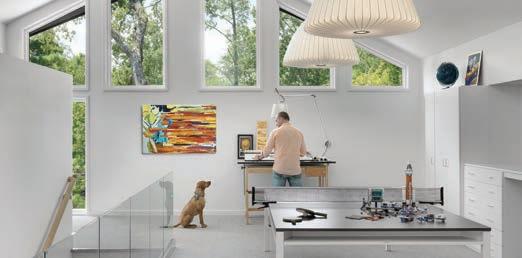 In 2014 when George Kaiser donated $350 million dollars to create the world’s largest public park in Tulsa, the surrounding neighborhoods started to change. What was once a blighted area with families choosing to live elsewhere suddenly became a popular place to live. The problem is, not many of the houses there are suitable for young families. When we were approached to design this home, we had to accommodate a lot of programming in a small footprint. Creating a three-story home on a diminutive lot presented a lot of challenges. The client wanted a two-car garage which we knew would dominate the front elevation, so we had to make sure the entry was profound enough to capture your attention. An open-air third-story patio with a cantilevered corner provides views heretofore unavailable in the area. An openconcept floorplan provides visual connections between the living room, dining room, and kitchen with a two-sided fireplace and custom wine refrigerator defining the spaces. With three bedrooms on the second floor, we were able to use the entire third floor to create a primary suite with an elegant bathroom and separate walk-in closets. Expansive windows and the introduction of natural elements to the interior truly bring the outside in for this young family. Photography by Toni Li