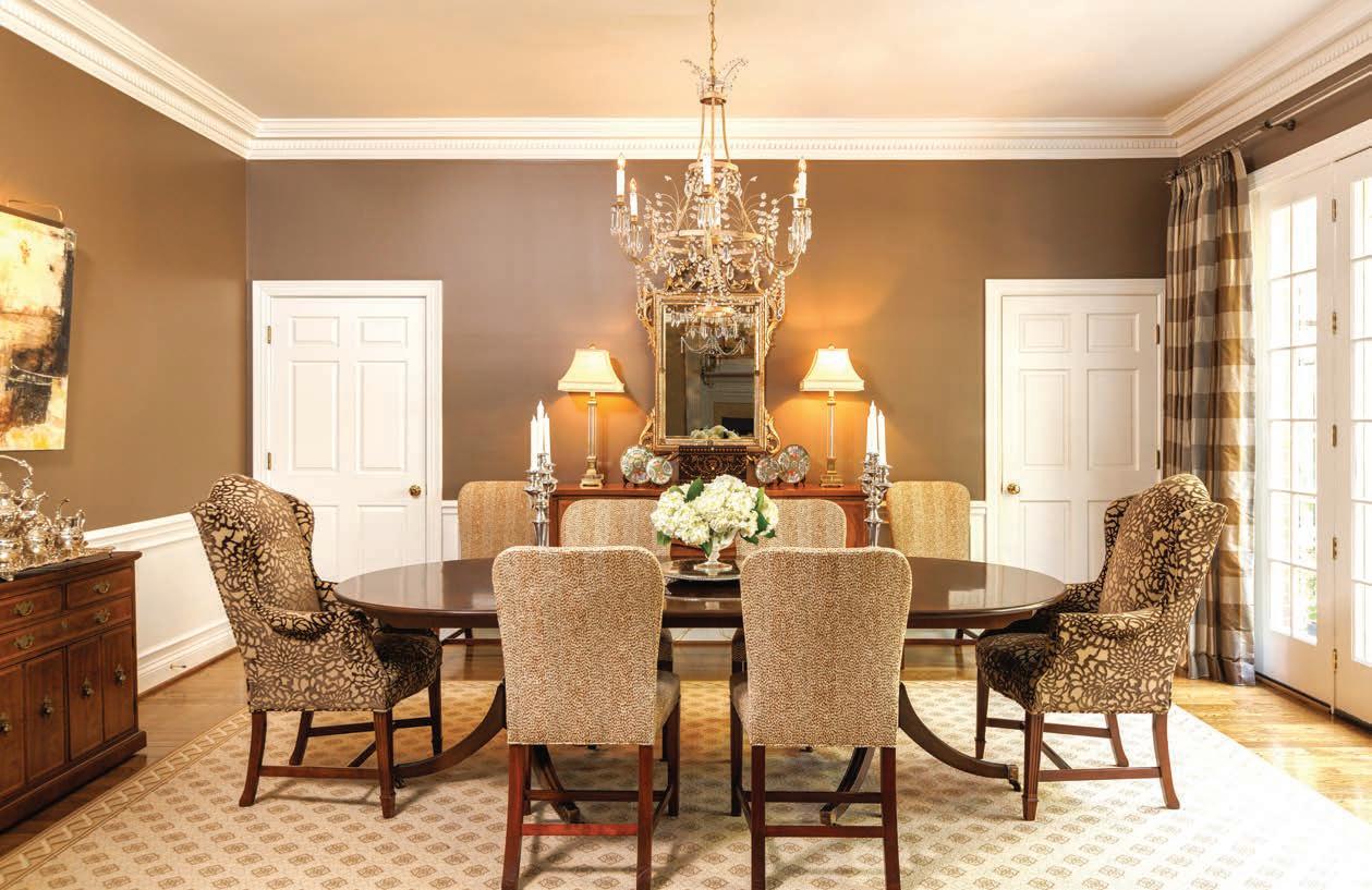 Chosen design elements and a concerted effort to refine the color scheme harmoniously meld with a collection of acquired and inherited antiques and family treasures that tell the story of a life well and fully lived. "I just love the mix," said the wife. Then, as of now, the wife has stayed true to brown as her "signature color." Tall ceilings and a floor plan with ample proportions provide breathing room for the strategically placed and meticulously organized collection.