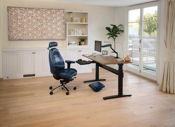 majority of users will be physically able to fit underneath. This creates a vast gulf between fitting and a proper fit, as the shorter user is forced to work in an awkward posture or modify the workstation; not good if you fall below or above “the norm.” “We often and erroneously accept that office deskwork is uncomfortable, and it doesn’t have to be that way,” she said. While Jen and her staff are willing and able to craft a custom ergonomically correct office setup from the ground up, she knows that’s not always an option space or budget-wise and is ready to offer options for all scenarios.