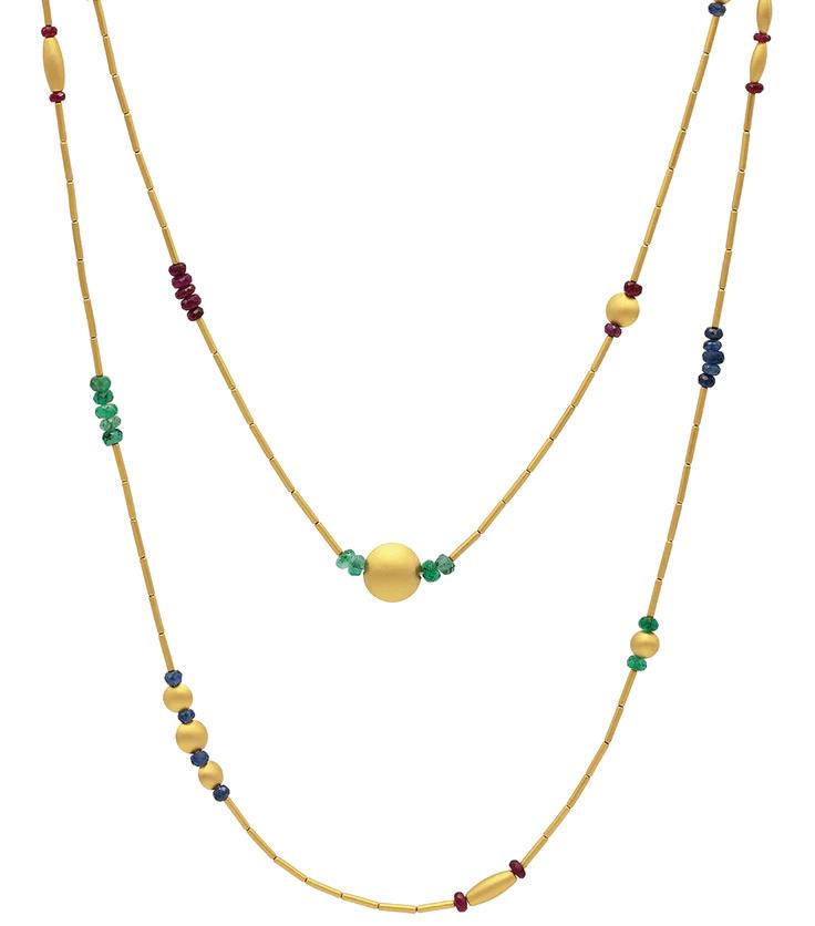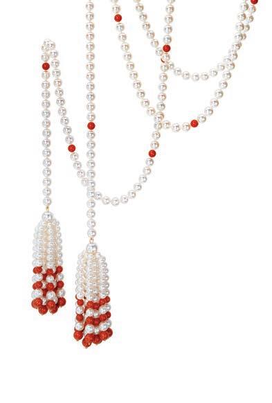 This page, clockwise from top left: Assael 62.5” Akoya pearl and sardinian coral tassel lariat necklace (assael.com). Suzanne Kalan 36” mini tennis necklace ($92,000; suzannekalan.com). GURHAN Rain 49” gold and gemstone necklace ($9,595). Available through Elleard B. Heffern in St. Louis, and gurhan.com. Milamore Diamond Duo chain ($16,700; milamorejewelry.com). Moritz Glik men’s Hiroki necklace with black and white diamonds in a white sapphire Kaleidoscope Shaker™ ($24,950; mortizglik.com). Tamara Comolli Signature Wave earrings ($5,100). Available through Moyer Fine Jewelers in Indianapolis and us.tamaracomolli.com. Yoko London Sleek pearl and diamond earrings ($1,509; yokolondon.com). Jade Ruzzo Harbour ear jackets in conch + tourmaline ($4,800; jaderuzzo.com). NeverNoT Hide N Seek Ready 2 Discover earrings ($10, 578; nevernot.co.uk). David Yurman pearl and pavé two row drop earrings ($2,400). Available through Moyer Fine Jewelers and Reis-Nichols Jewelers in Indianapolis, Davis Jewelers in Louisville and davidyurman.com. Luvente Bold Pear dangle earrings ($17,000). Available through the Richter & Phillips Co. in Cincinnati and luvente.com. Ali Weiss gold hoops with 5 drop diamond chains ($2,550; aliweissjewelry.com). Lydia Courteille Rosa Del Inca pendant (price upon request; lydiacourteille.com). Mattia Cielo 18 row bracelet with diamonds (price upon request; mattiacielo.com). Buddha Mama shaker bracelet (buddhamama.com). Asherali Marcia interchangeable earring (asherali-paris.com). Marco Bicego Petali earrings (from $7,550). Available through Diamond Cellar in Columbus, Reis-Nichols Jewelers in Indianapolis, Davis Jewelers in Louisville, Simons Jewelers and Clarkson Jewelers in St. Louis and us.marcobicego.com. Opposite page, clockwise from top left: Kinraden Other Blooms necklace ($706; kinraden.com). Lugano flexible green diamond and opal titanium ring (price upon request; luganodiamonds.com).