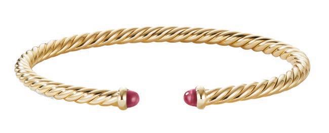 Ruby is July’s birthstone. David Yurman Cable Flex bracelet with rubies ($2,300). Available through Davis Jewelers (davisjewelers.com).
