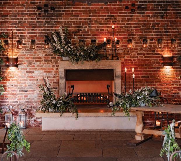 On May 12th, Alyx Vinieris Giancola, the daughter of bridal designer Rita Vinieris, married Simon Goodwin at Hazel Gap, a historic and lovingly restored brick barn venue on the Welbeck Estate in Nottinghamshire, UK. The site provided the perfect backdrop for the predominantly black and white color palette, a theme Rita described as "modern, chic, and ethereal in a minimalist way." The florals were a mix of greenery with whimsical wildflowers in keeping with the chosen coloration. Altogether, Alyx wore three different Rita Vinieris gowns throughout the celebration, progressing from ivory to black as the festivities progressed.
