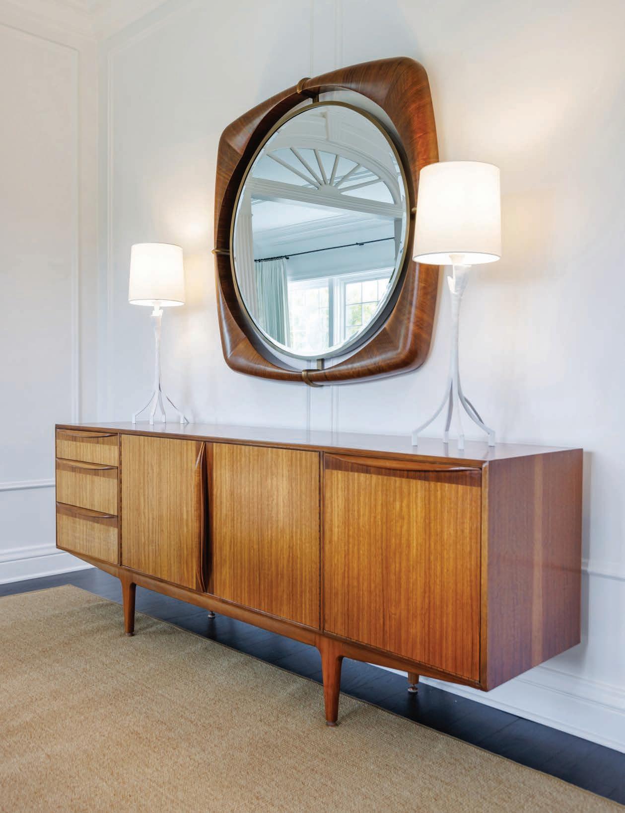 "It took discipline to start from scratch," remarked Natalie, who worked with Douglas to select textiles, Santa Clara pottery, and artwork created by artisans in Santa Fe. Douglas combined these with handsome mid-century-inspired furnishings and bespoke Bittners-made pieces to impart the timeless luxury of a high-end hotel suite.