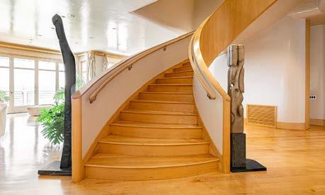 The lacquered finish of the walls in the wife’s office took six weeks to complete.