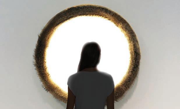 Baitel says that each piece, developed through proprietary manufacturing processes and technologies in collaboration with the finest artisans in Europe, “tells a story materialized through a dedicated plastic expression, generating new typologies of objects.” The designer prompts us to question our relationships and interactions with the things surrounding us while she explores their common codes to propose concepts with strong inspirations. Her innovations include a lamp made entirely of flesh-colored leather, an interactive circular wall light ringed with fur, a stool inspired by the world of haute joaillerie, and a sofa inspired by the fluidity of maritime landscapes. These highquality creations express the artist's embrace of a constant dialogue between traditional craftsmanship and innovative experimentation.