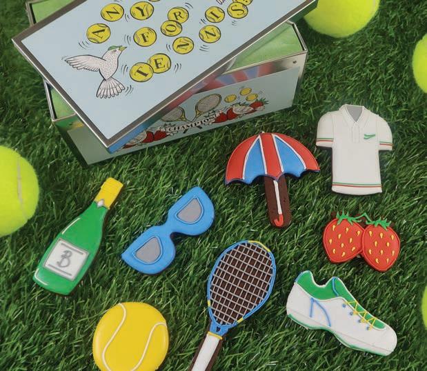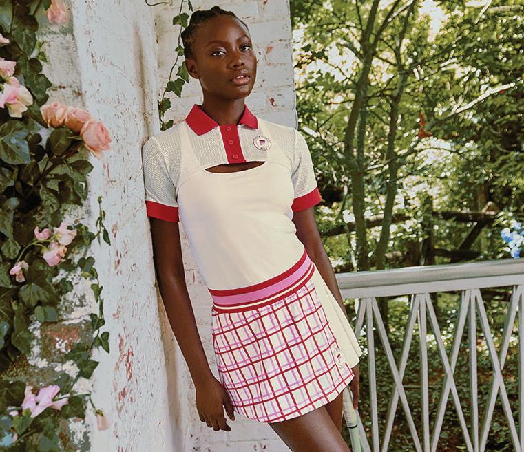 ($120) and printed skort ($95; fila.com). Vinglacé limited edition pickleball wine set in white ($149.95; vinglace.com). Anyone for Tennis biscuit box from Biscuiteers ($58; biscuiteers.com). Palissade bench from Hay ($1,045; us.hay.com). Spinshot player Pickleball machine (from $1,979; spinshotsports.com).