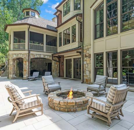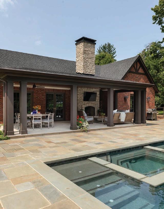 Already resplendent with acres of lush lawns purposefully interrupted by carefully manicured terraced gardens surrounding the Tudor-style home and pool, the recent addition of a spacious one-bedroom pool house is the cherry on top. Interior designer Tate Reynolds worked with builder Doug Amlung to ensure continuity between the home and its mini-me, connected via a covered breezeway, going so far as to clad the new build in custom-colored bricks to mimic an aged patina.