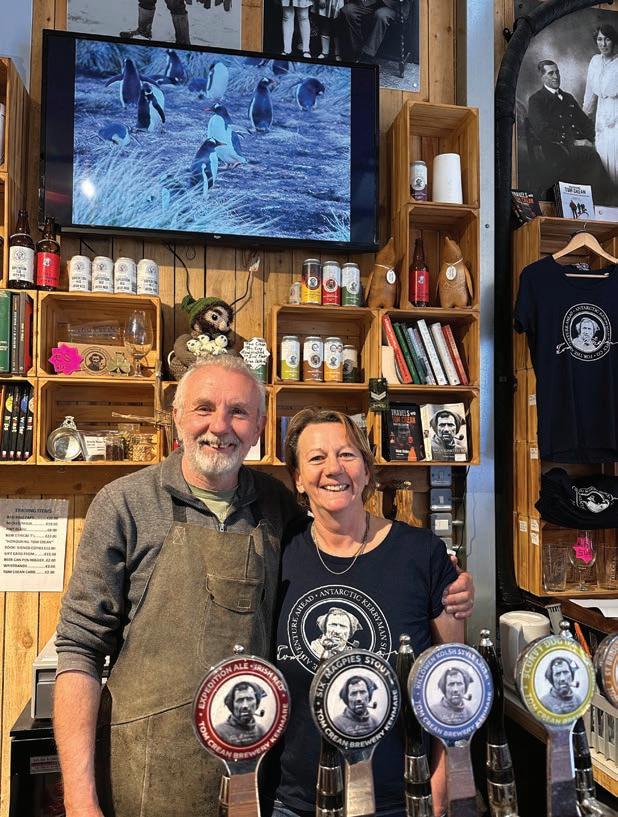 We enjoyed a half-day walking tour led by Kenmare Foodie Tours (kenmarefoodies.com), during which we sampled authentic French pastries at Maison Gourmet (maisongourmetkenmare. com), where the husband-and-wife owners hail from the Pyrenees; farmhouse cheese and charcuterie at Heidi Ryan's Wholesome Food, and award-winning, handmade chocolates from Lorge Chocolatier (lorge.ie), whose affable owner Benoit, a native of France, moved to Kenmare twenty-five years ago. Those with an adventurous spirit or just a fondness for craft beer will want to stop for a pint at the Tom Crean Brewery (tomcreanbrewerykenmare.ie). Another husbandand-wife enterprise, the duo are as passionate about their craft as they are about exploring the far corners of the globe. "We aim to produce a pint that doesn't cost the earth," explained Bill Sheppard, a former fireman from England who met his wife Aileen Crean O’Brien, a Kenmare native, while traveling in Goa, India. The couple worked with Dutch scientists to build a biodigester that converts the spent grain from distilling into high-protein silage to feed sheep. While sipping a St. Bridget Irish Lager, I learned that the patron saint was a brewer and several of the miracles attributed to her involved beer.